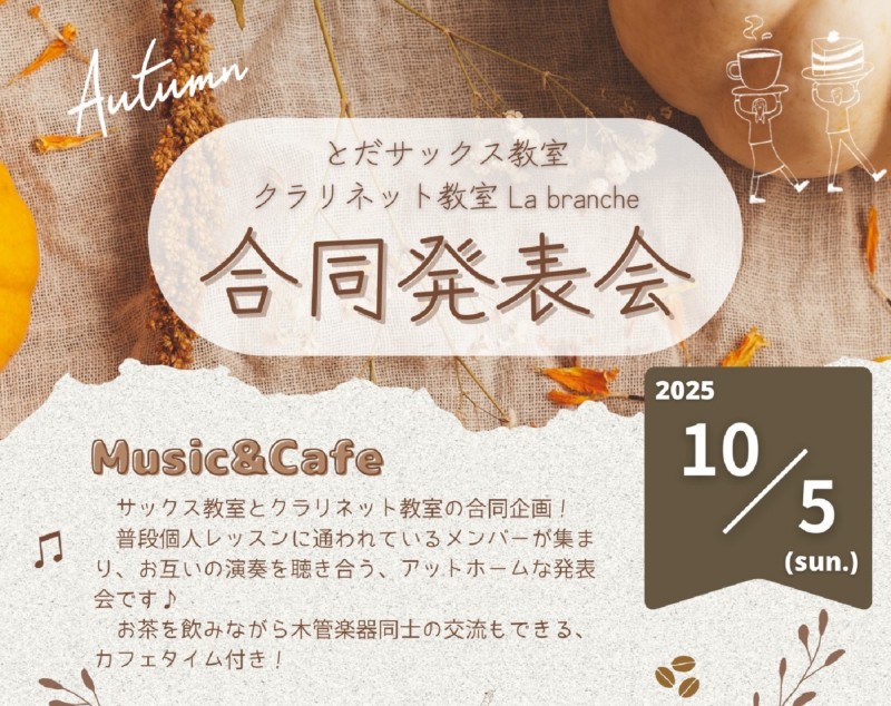 9月某日、Cafe発表会に向けてリハーサルを行いました。今回の発表会は「クラリネット教室La branche」と「とだサックス教室」の合同開催ですので演奏曲もバラエティに富んでいて面白い!