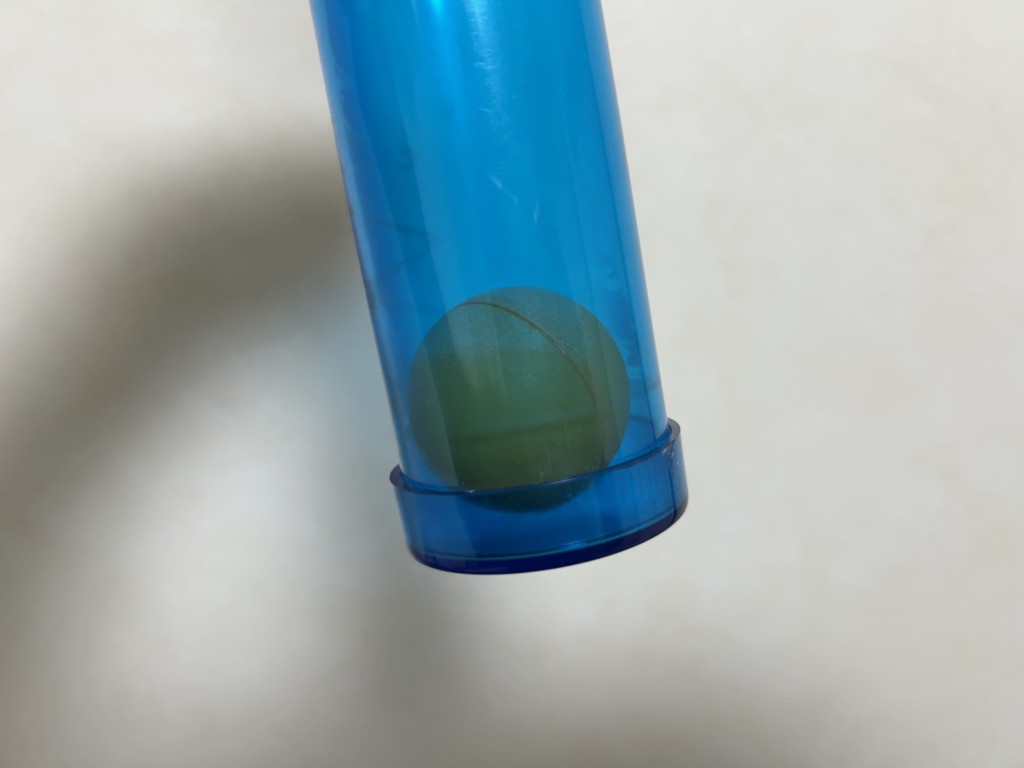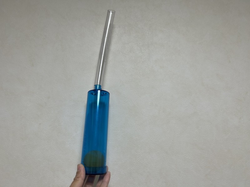 筒の中に入っているピンポン玉が落ちないように息を吐いたり吸ったりすることで自然とブレストレーニングができるんです。