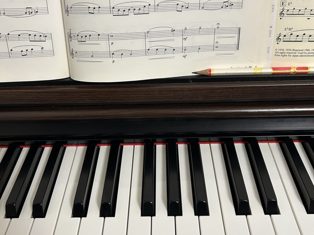 編曲するときはピアノを弾きながら作業することが多いです。メロディー譜からコードを拾って、3〜4パートに振り分けていきます。完成したら生徒さんたちに連絡します〜♪