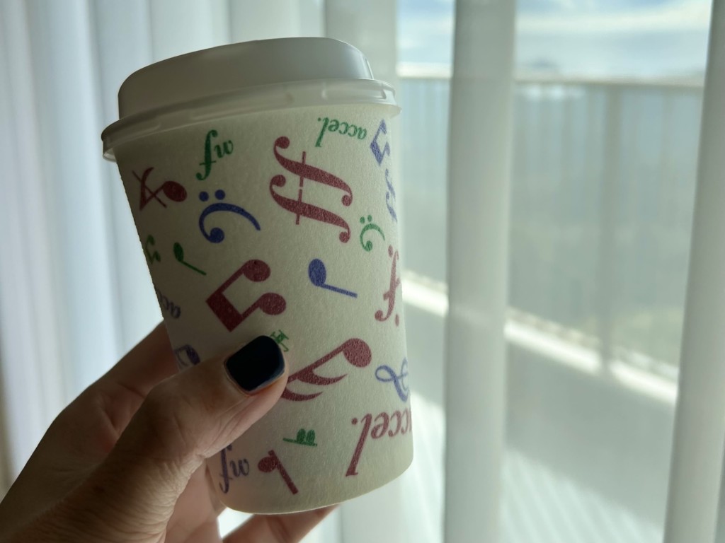 リフレッシュ先のホテルのコーヒーカップが音符柄でかわいい。職業柄すぐこうゆうのに反応しちゃいます〜