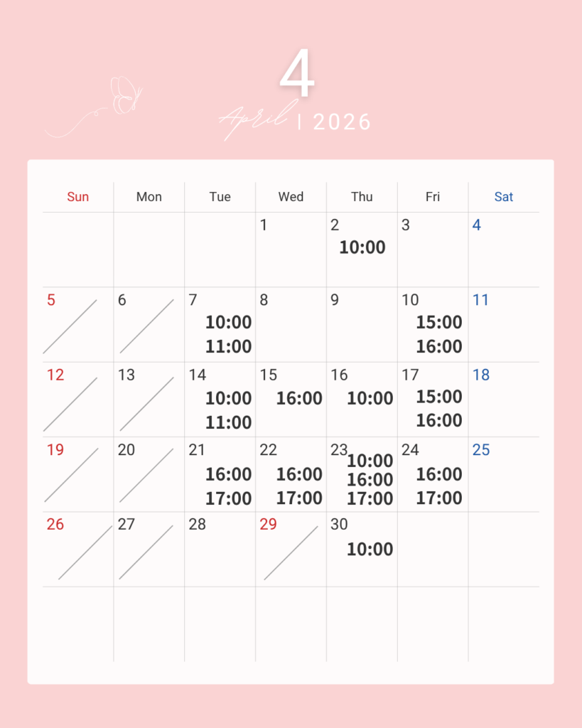 4月の体験レッスンカレンダー